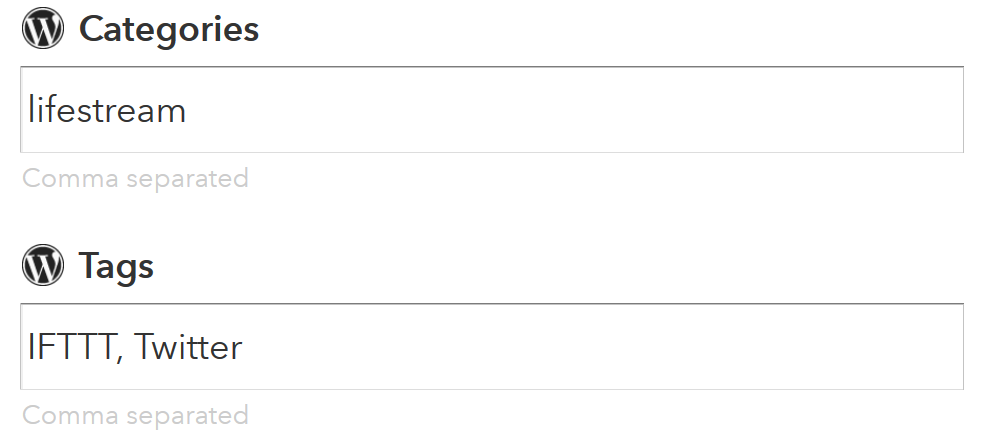 As you are probably using IFTTT to automatically populate your lifestream you can edit your recipes so that the posts are tagged automatically. Just add the tag name right into the recipe. My Twitter recipe automatically tags all posts with “IFTTT” and “Twitter”.